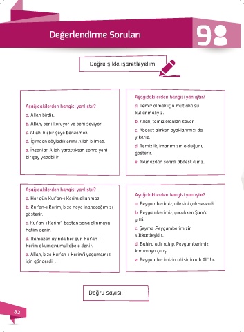 Aşağıdakilerden hangisi yanlıştır? a. Temiz olmak için mutlaka su