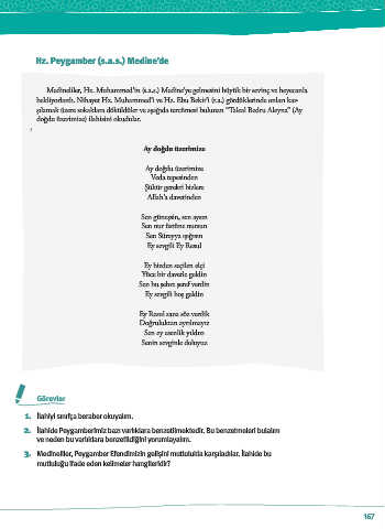3. Medineliler, Peygamber Efendimizin gelişini mutlulukla karşıladılar. İlahide bu