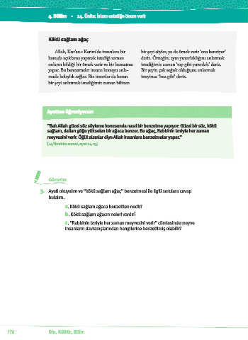 3. Ayeti okuyalım ve “kökü sağlam ağaç” benzetmesi ile ilgili sorulara cevap