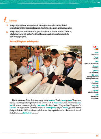 David anlatıyor: Bizim dinimizin kutsal kitabı Tanah’tır. Tanah, Tevrat ve Zebur’dan oluşur.
