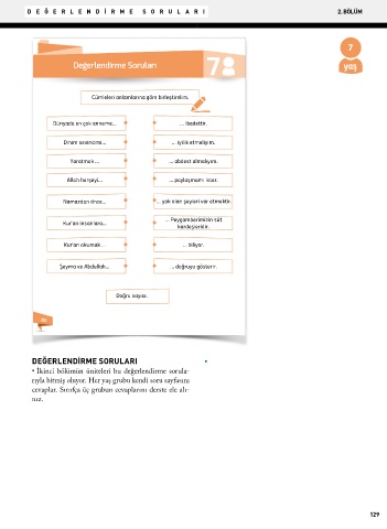 • İkinci bölümün üniteleri bu değerlendirme sorula-