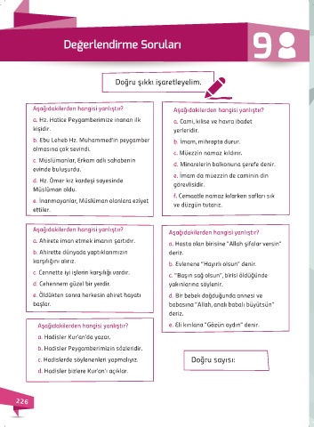 c. Hadislerde söylenenleri yapmalıyız. Doğru sayısı: