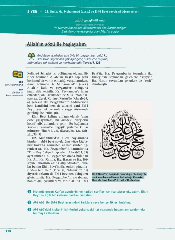 SİYER • 23. Ünite: Hz. Muhammed (s.a.s.) ve Ehl-i Beyt sevgisini öğreniyorum